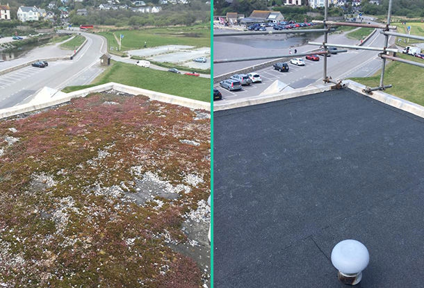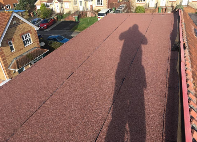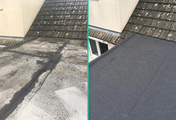 The original roof was split in various places and letting water leak into the flats below. We stripped off the chippings, applied bitumen primer, then applied two layer of torch on felt for a better look and no leaks!